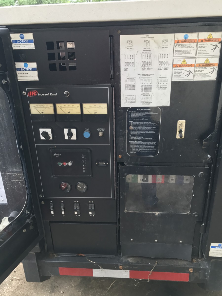 Sound-attenuated enclosure, Voltage selector switch, Trailer-mounted, 47 gallon fuel tank, auto-start control panel, Mecc Alte Gen End