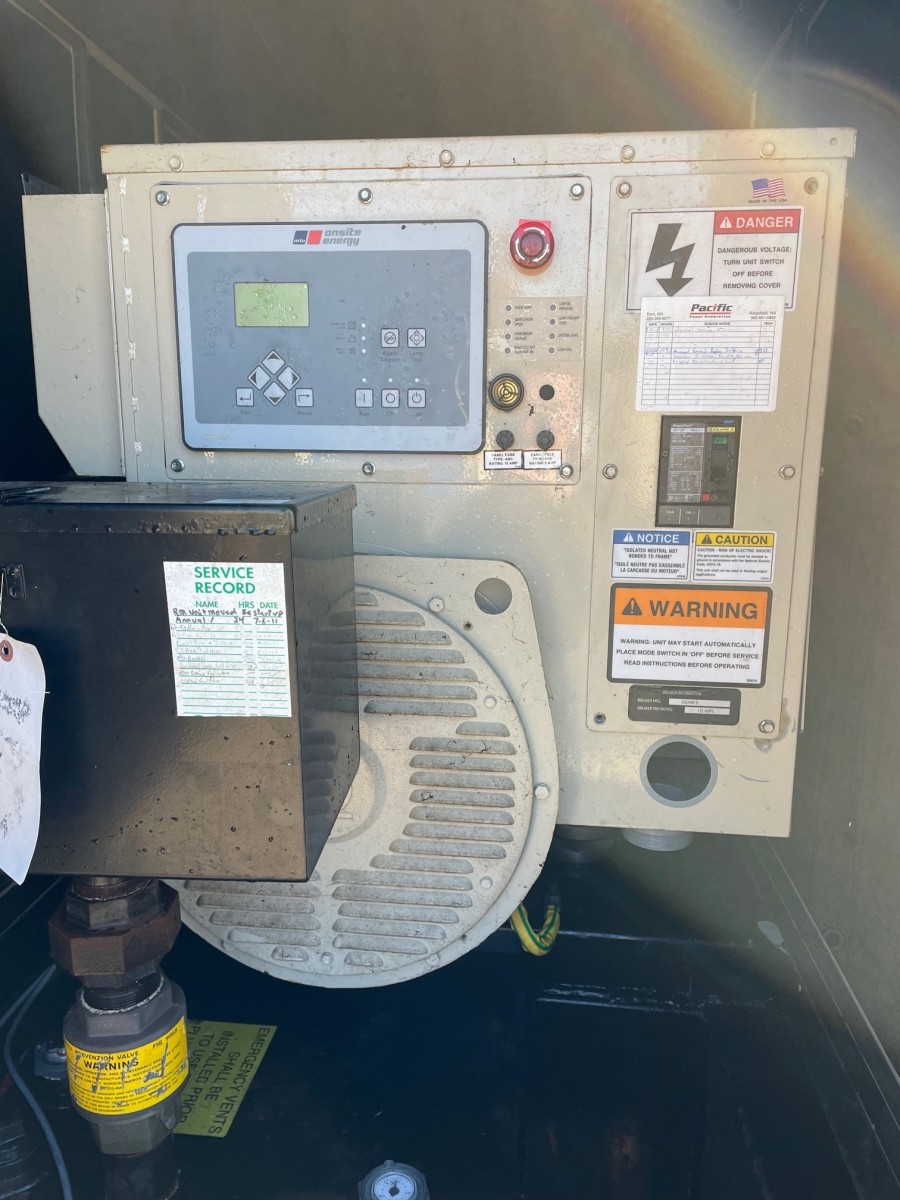 Sound Attenuated Enclosure with a 210 gallon subbase fuel tank. Serviced and load bank tested.