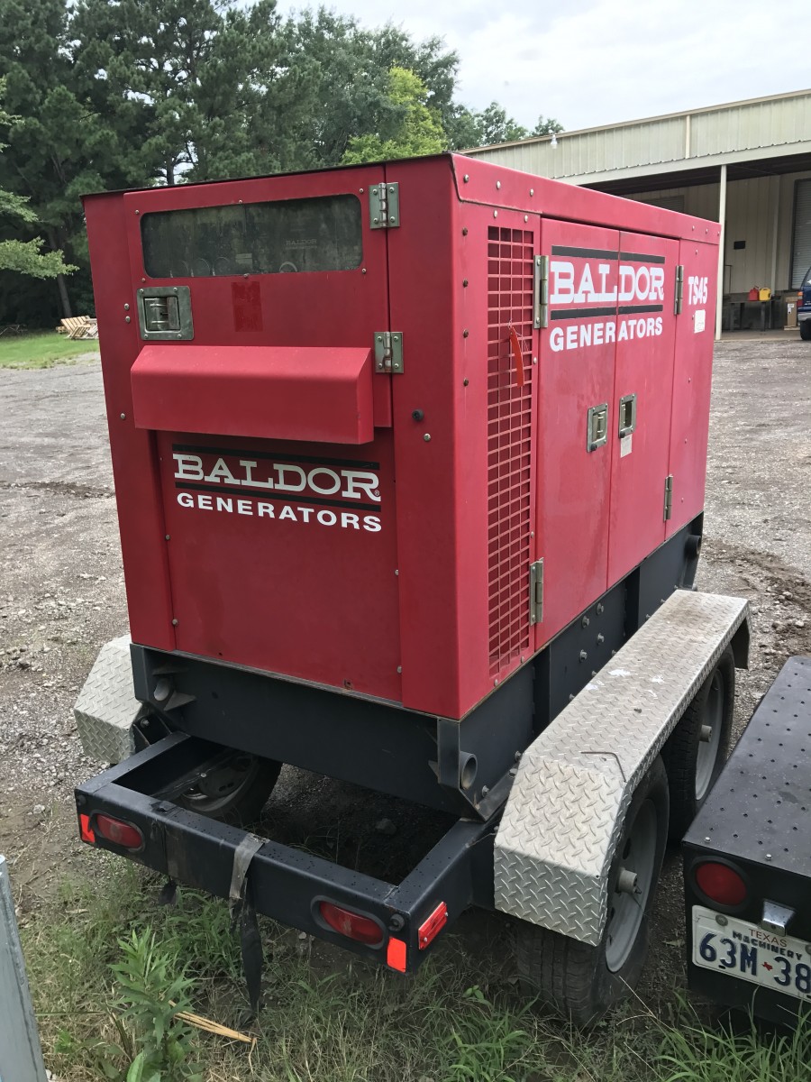Sound-attenuated enclosure, Voltage selector switch, Trailer-mounted, 47 gallon fuel tank, auto-start control panel, Marathon Gen End