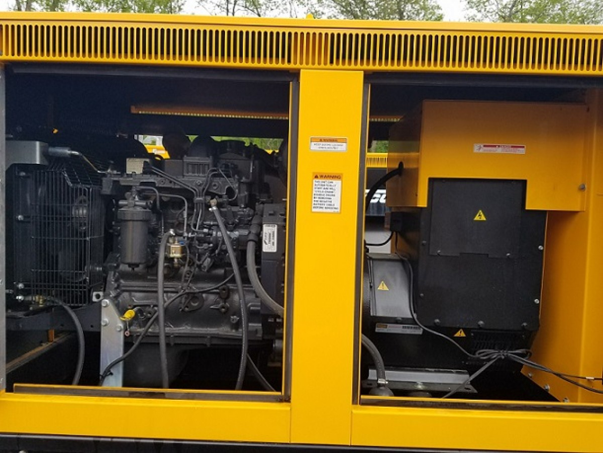 Sound-attenuated enclosure (70 dBA), 110 Gal diesel fuel tank, Basler Control Panel, Voltage Selector Switch,