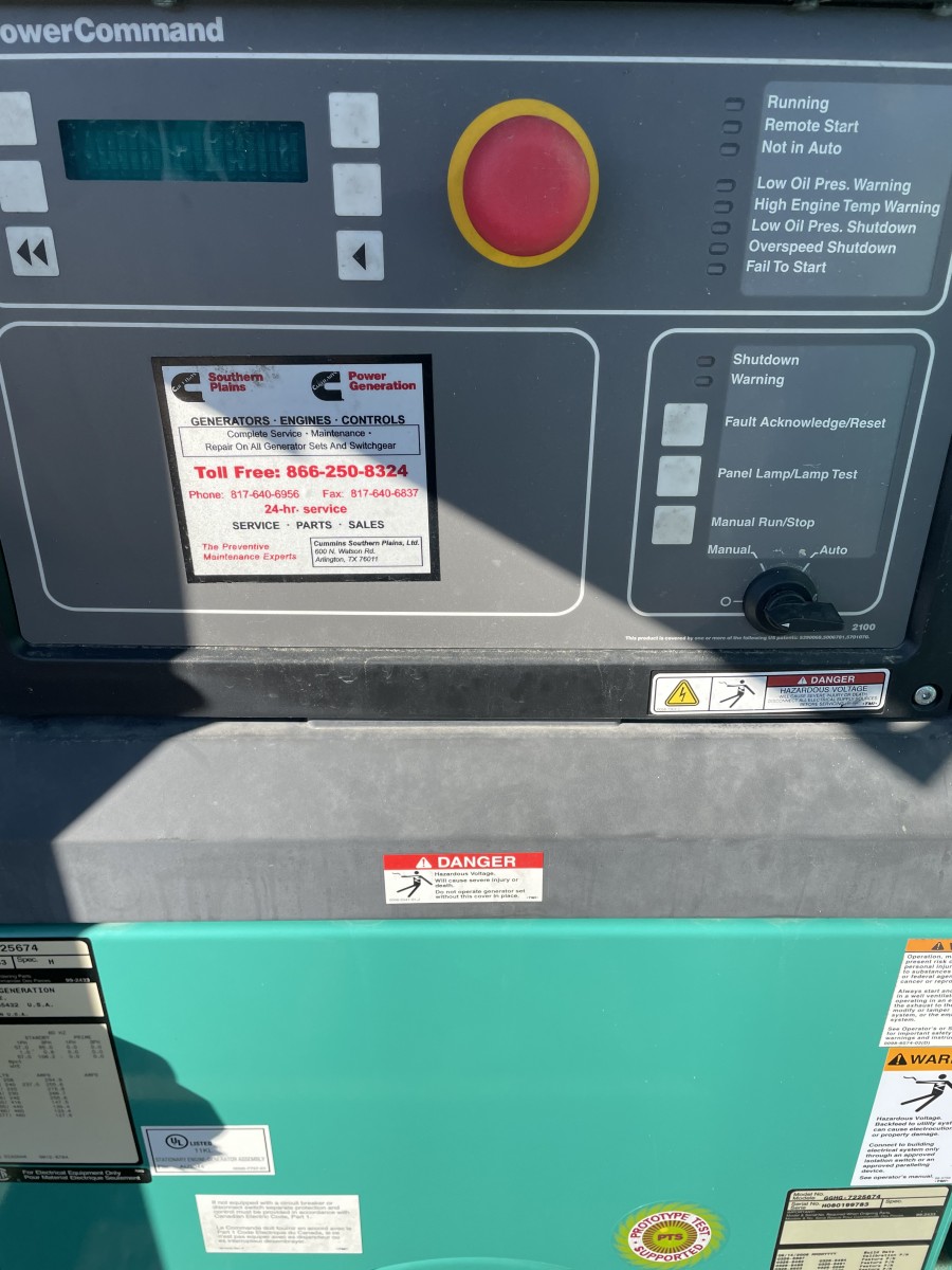 Used 85kW Cummins Generator Set, Weather-proof enclosure, 12 lead gen end (reconfigurable), PCC2100 controller.