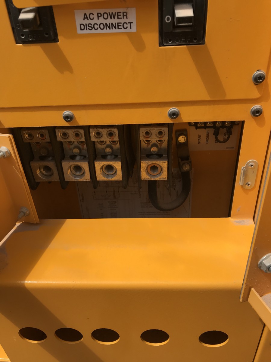 Sound-attenuated enclosure (70 dBA), 110 Gal diesel fuel tank, Basler Control Panel, Voltage Selector Switch,